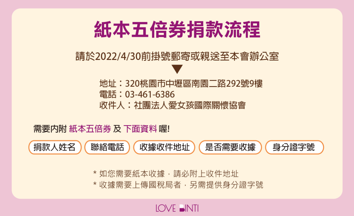 愛女孩團隊 由衷感謝您的五倍愛心捐款❤❤