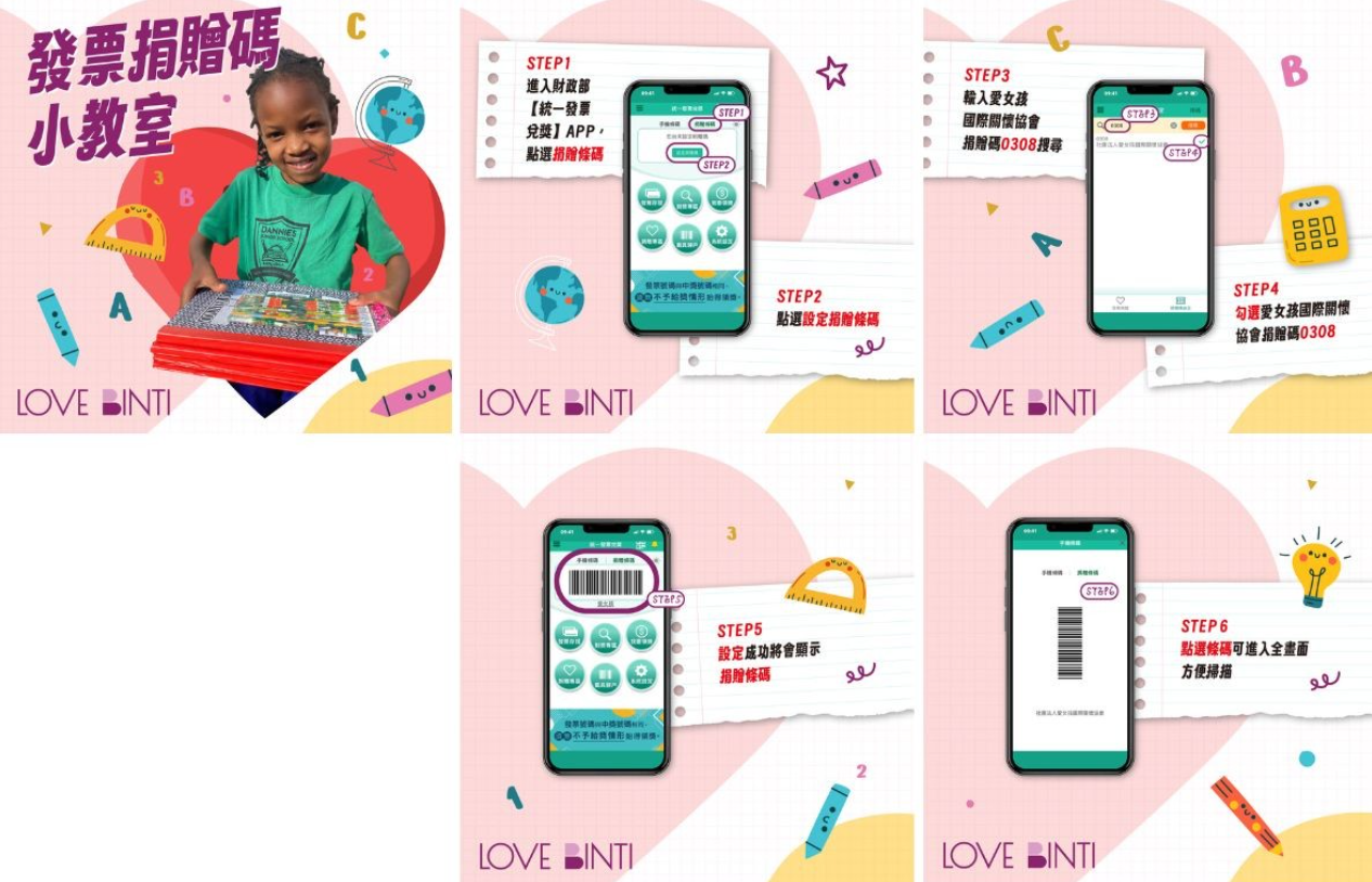 圖說:愛女孩於3月8日國際婦女節發起電子發票捐贈活動,輸入「0308」電子發票捐贈碼,一起支持女性培力,改變更多人的生命(資料來源:愛女孩Love Binti)