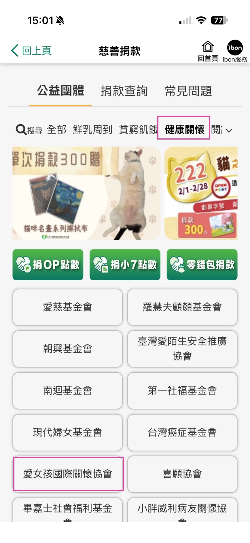 3.選取分類「健康關懷」後,找到「愛女孩國際關懷協會」。