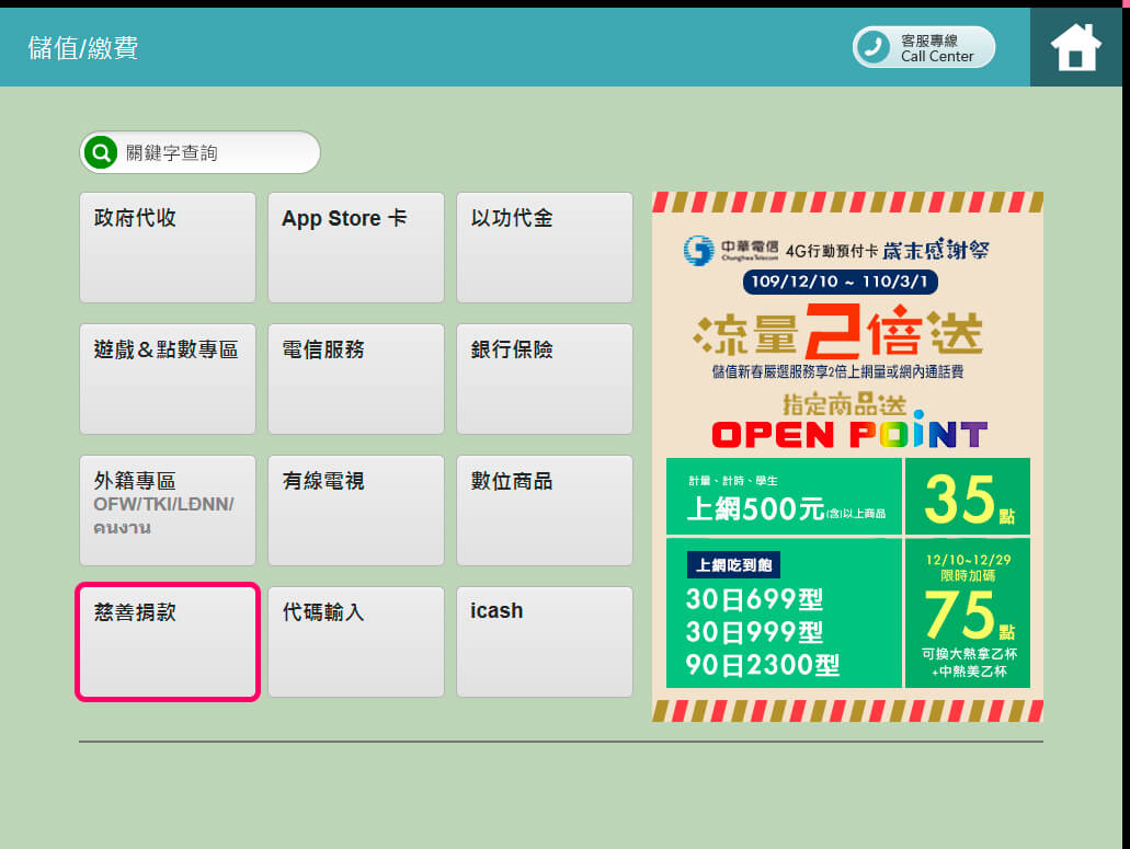 捐款方式二|使用 OPEN POINT App 線上捐款