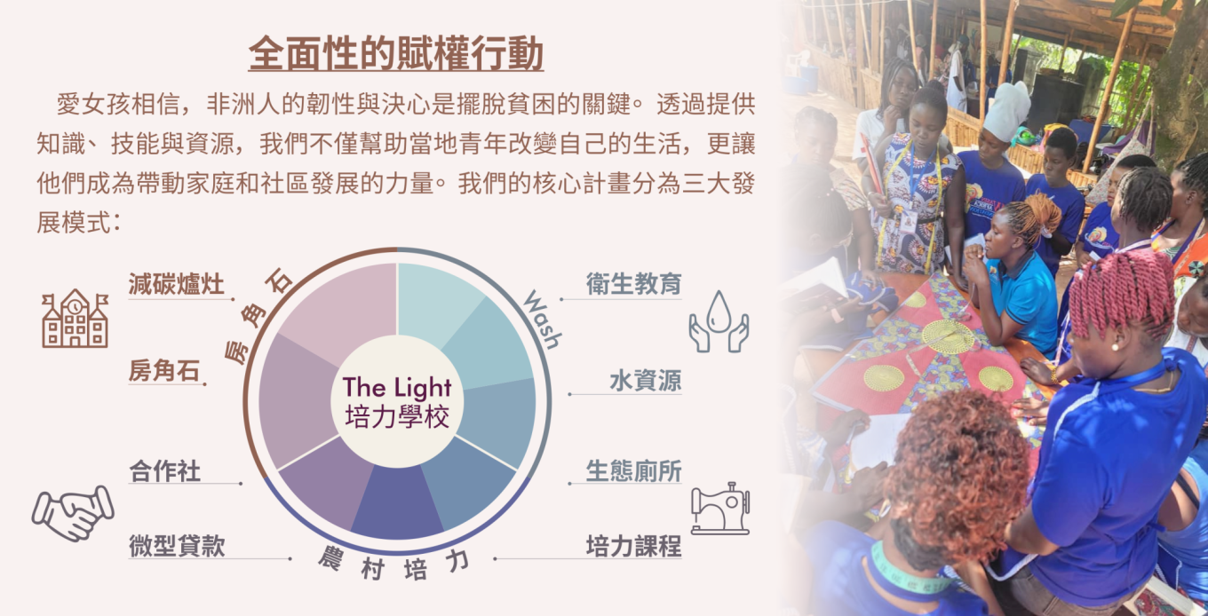 透過多元職能訓練與社區賦能計畫,我們幫助她們站穩腳步,看見自己的價值、選擇人生方向,更建立地方自給自足的基礎產業,為非洲偏鄉的發展奠定穩固的基礎。