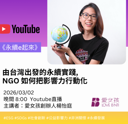 當我們談論「永續」時,您腦海中浮現的是數據報表,還是真實改變的生命笑臉? 3/2晚間 8:00,我們的創辦人楊怡庭,在《永續e起來》youtube頻道直播。